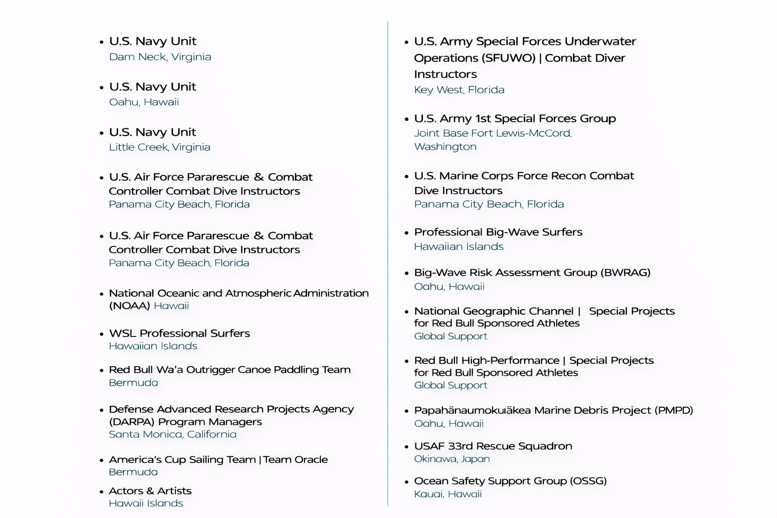 Organizations, Military Units & Professionals Trained/Supported